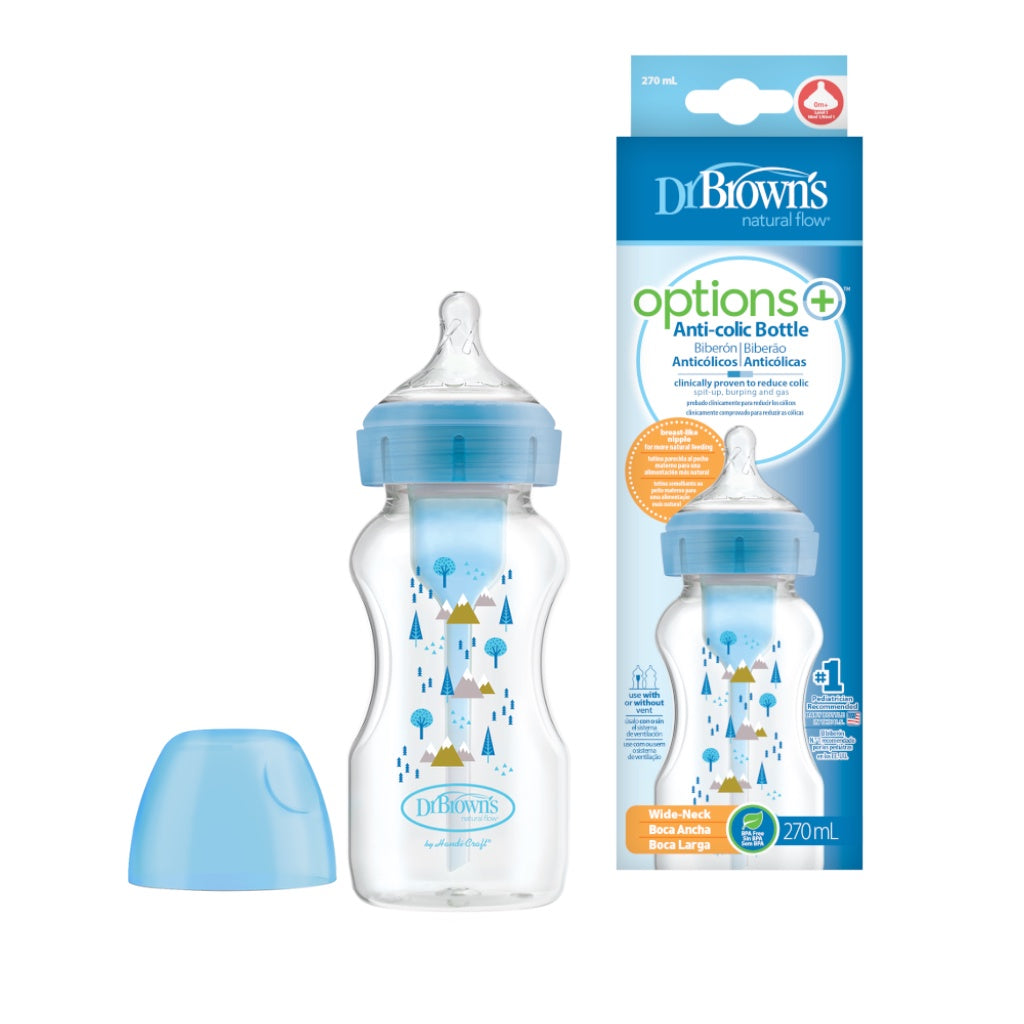 Dr. Brown’s Anti-Colic Options+ PP Wide Neck 9oz/270ml Bottle, Floral/Alphine/Star, 1 Bottle, Level 1 Teat