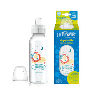 The sippy spout fits any Dr. Brown’s® Options+™ Narrow bottle after the internal vent is removed. All parts are safe for use in dishwasher (top rack only), electric and microwave sterilizers or boiling water.