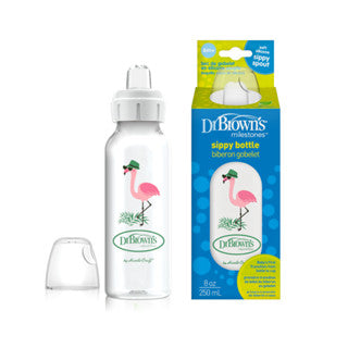 The sippy spout fits any Dr. Brown’s® Options+™ Narrow bottle after the internal vent is removed. All parts are safe for use in dishwasher (top rack only), electric and microwave sterilizers or boiling water.