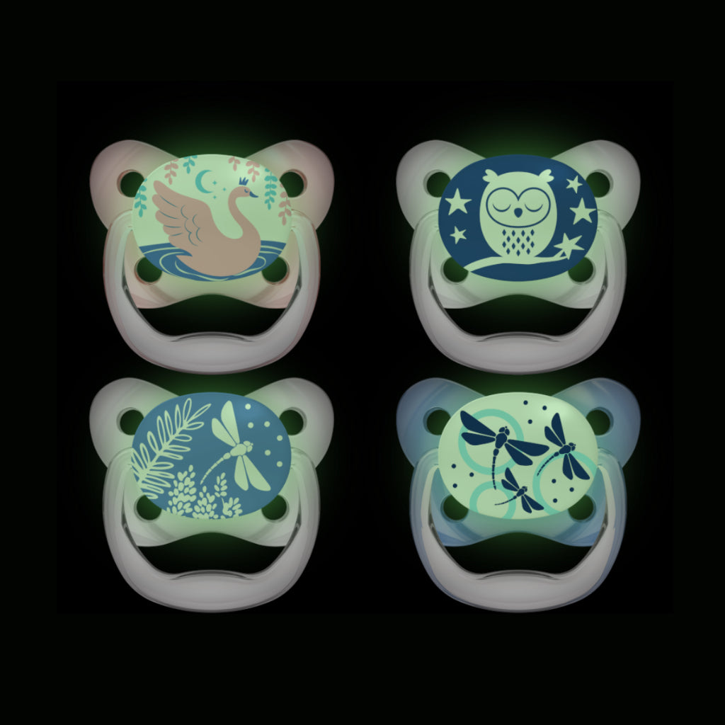 - The glow-in-the-dark shield makes the pacifier easy to locate at night and is easy to recharge – just expose to light