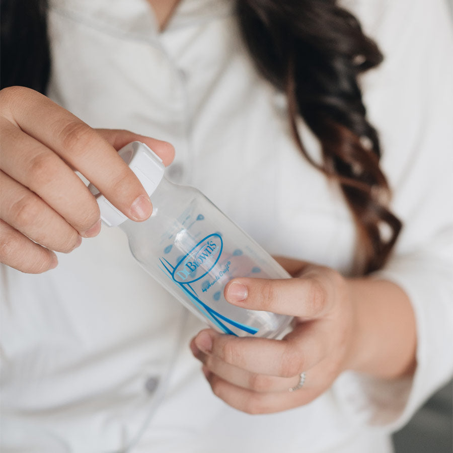 - Use when traveling by air to prevent effect of pressurized cabin on the Dr. Brown’s vacuum-free bottle